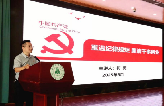 何勇以“重温纪律规矩 廉洁干事创业”为题讲授专题党课,他以大量实例为依据,从什么是党规党纪、新的《中国共产党纪律处分条例》解读、争做遵规守纪模范三个方面进行讲解。希望毕业生党员在认知上,深学党纪党规,筑牢思想根基;在实践上,精研新《条例》,标定行为准绳;在担当上,争当守纪标杆,扛起清廉担当。何勇表示,中共党员是一种身份、一种约束,也是一份责任、一份使命,希望大家在工作岗位上牢记初心使命,坚守红线底线,廉洁干事创业。