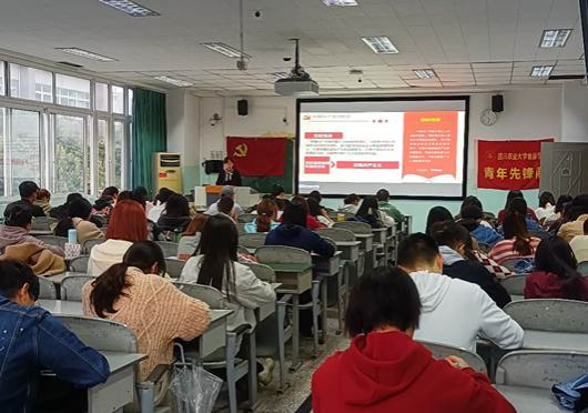 课程伊始,汤瑞瑞便拿出《中国共产党章程》,与同学们共同学习总纲对中国共产党性质的描述。在本次党课中,汤瑞瑞分别从中国共产党的性质、中国共产党的宗旨以及我们党的组织原则三部分,系统讲解了中国共产党为什么能带领中国人民走向全面小康,并通过具体实例勉励积极分子牢记党的性质、宗旨,坚决反对一切消极腐败现象,始终以党员的标准严格要求自己,谨记中国共产党“为中国人民谋幸福,为中华民族谋复兴”的初心和使命。同时,她以《焦点访谈-新的伟业 发展全过程人民民主》视频资料,带领入党积极分子们认真领会民主集中制的科学内涵,引导积极分子树立正确的价值观,坚持党的组织原则,严守党的纪律规定,发挥先锋模范作用,向一名合格的入党积极分子迈进。
