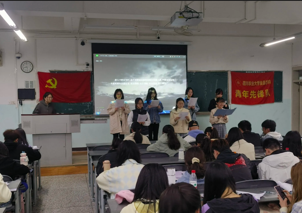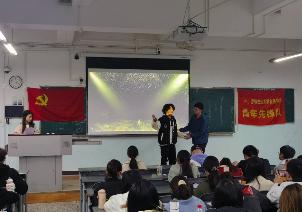3月28日,2023年上半年入党积极分子培训班学员以”践行川农大精神,做优秀食品人”为主题在10—A212开展实践活动,引导莘莘学子学习、践行、弘扬川农大精神,学专业爱专业,刻苦勤奋,创优争先。
