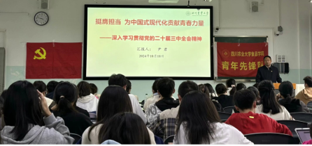 在“深入学习党的二十届三中全会”党课上,集团离退休处党委副书记、副处长尹君老师深入剖析党的二十届三中全会精神,让学员们深刻领会新时代党的使命与担当。尹君要求学员们要深刻认清“三个更加”,客观认识“六个坚持”,正确认准“七个聚焦”,自觉认同“十五方面部署”。党的二十届三中全会为国家的未来绘制了宏伟蓝图,明确了奋斗方向,激励着同学们为实现中国梦而努力拼搏。