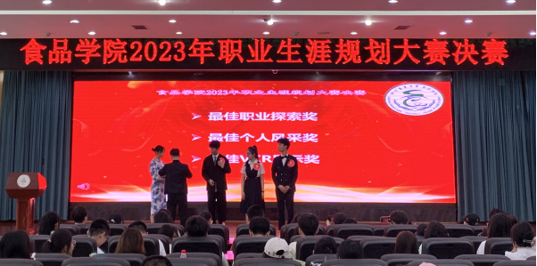 决赛现场,第一轮风采展示环节,选手用VCR视频展示了个人情况,对个人探索、职业认知、目标定位、职业发展路线等方面进行了深入的剖析,并分阶段、递进式提出了切实可行的行动计划。选手们的职业选择包括食品安全监督员、选调生、美食记者、生物医药研究员、海关工作者等各类求职岗位,食工21级的马玉爽更是提出“为中国品牌公关,擦亮中国名片”的求职宣言。