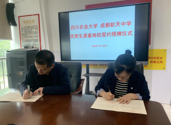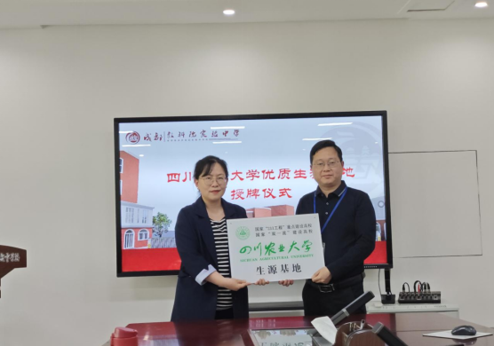 在双方代表的见证下,川农与两所中学正式签署《优质生源基地共建协议》并授牌。根据协议,双方将在招生宣传、学术交流、生涯规划指导等方面深化合作,为中学学子提供精准升学服务。高考志愿填报前夕,川农还将组织专场宣讲会,通过政策解读、专业介绍、互动答疑等形式,帮助考生全面了解川农优势学科与招生政策。