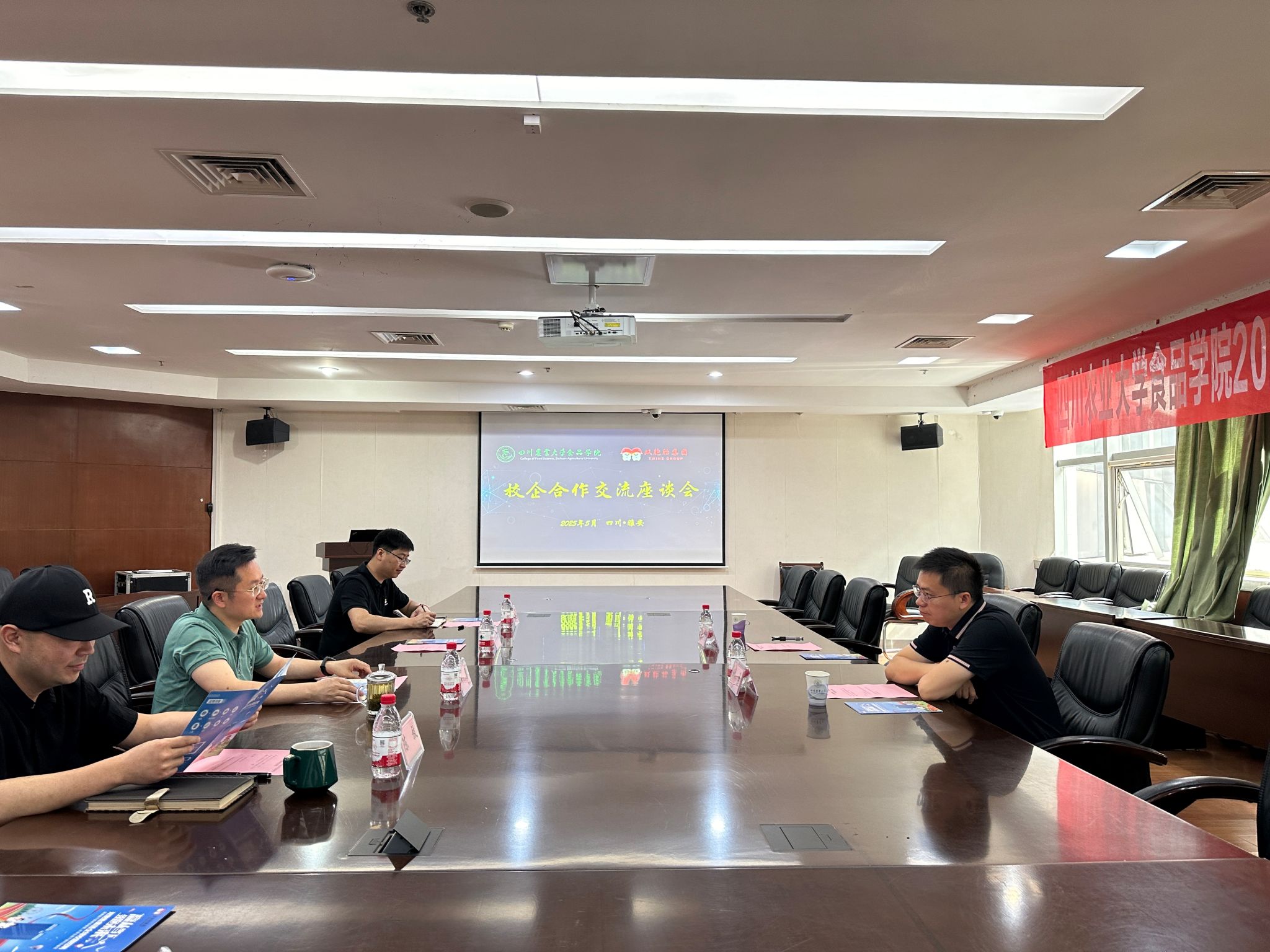 5 月 12 日,双胞胎集团川陕人力总监林勇、招聘经理黄天朋一行到访伟德国际victor1946,双方在综合楼214会议室举行交流座谈会,并同步开展校园招聘工作。公司党委书记何勇、党委办公室主任胡敏伦及全体辅导员参与会议。