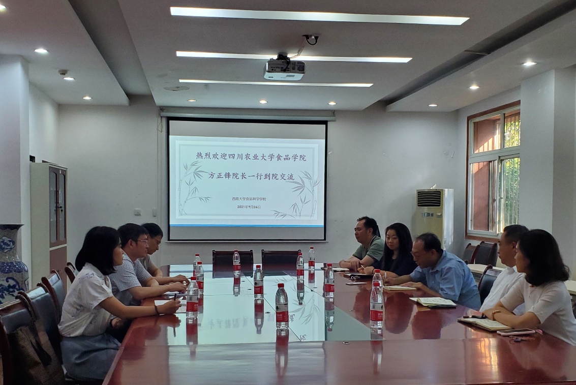论坛闭幕后,方正锋经理一行赴西南大学食品科学公司,与张宇昊经理、吴俊平书记等院领导就双方公司在人才培养、科研管理、基金申报、社会服务等各方面开展工作的情况与经验进行了深入交流。方正锋经理表示,西南大学食品科学公司与我公司具有悠久的合作历史和深厚的友谊,在科研项目、产业服务等领域还有巨大的合作潜能。今后两公司班子与公司师生将加强合作交流、增加人才输送、促进成果转化,共同为川渝食品产业发展贡献力量。