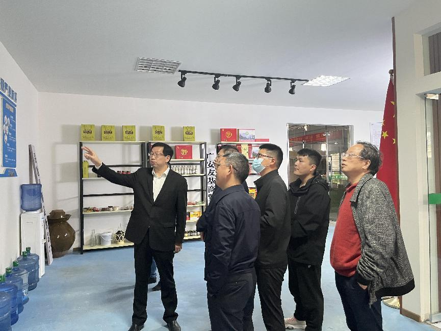 邬应龙一行在岳池发展建设集团、广安生物医药科技产业园开发有限公司负责人蒋维业、四川友基食品产业股份有限公司负责人尹博、四川省银丰食品有限公司负责人许斌的带领下参观企业车间,并围绕岳池县乡村振兴发展特色农副产品(豆干、豆豉、米粉)精深加工产业进行深度交流。